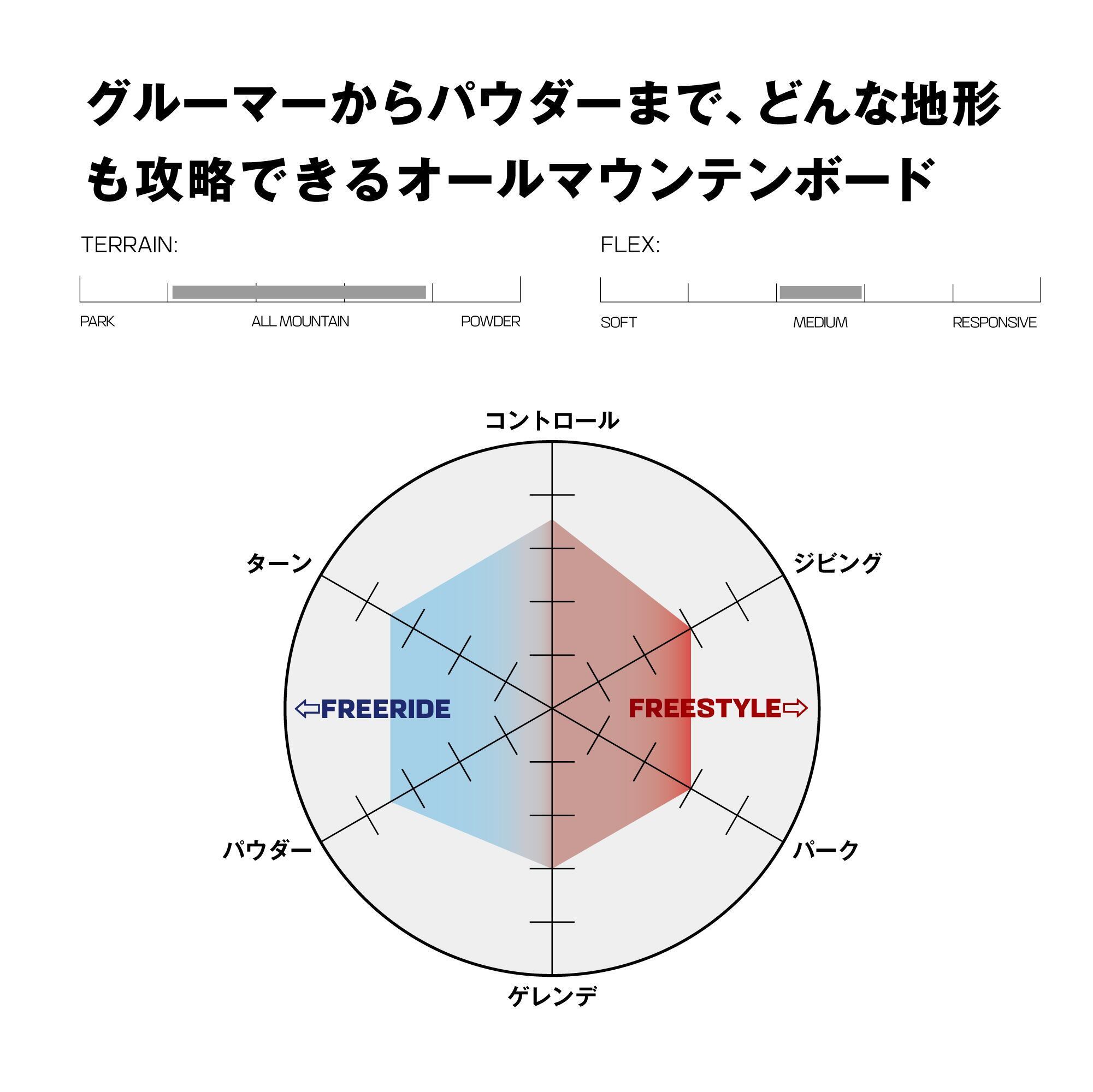 ◇ Wonderはどんな地形も攻略できるオールマウンテンボードです。ディレクショナルツインシェイプにロックアウトキャンバーを採用することで、グルーマーからパウダーまでを網羅する走破性を実現します。ミディアムフレックスとゴーストバサルトストリンガーにロイヤルコルクパッドを組み合わせることで遊び心と安定感の完璧なバランスとスムーズなライディングを実現します。