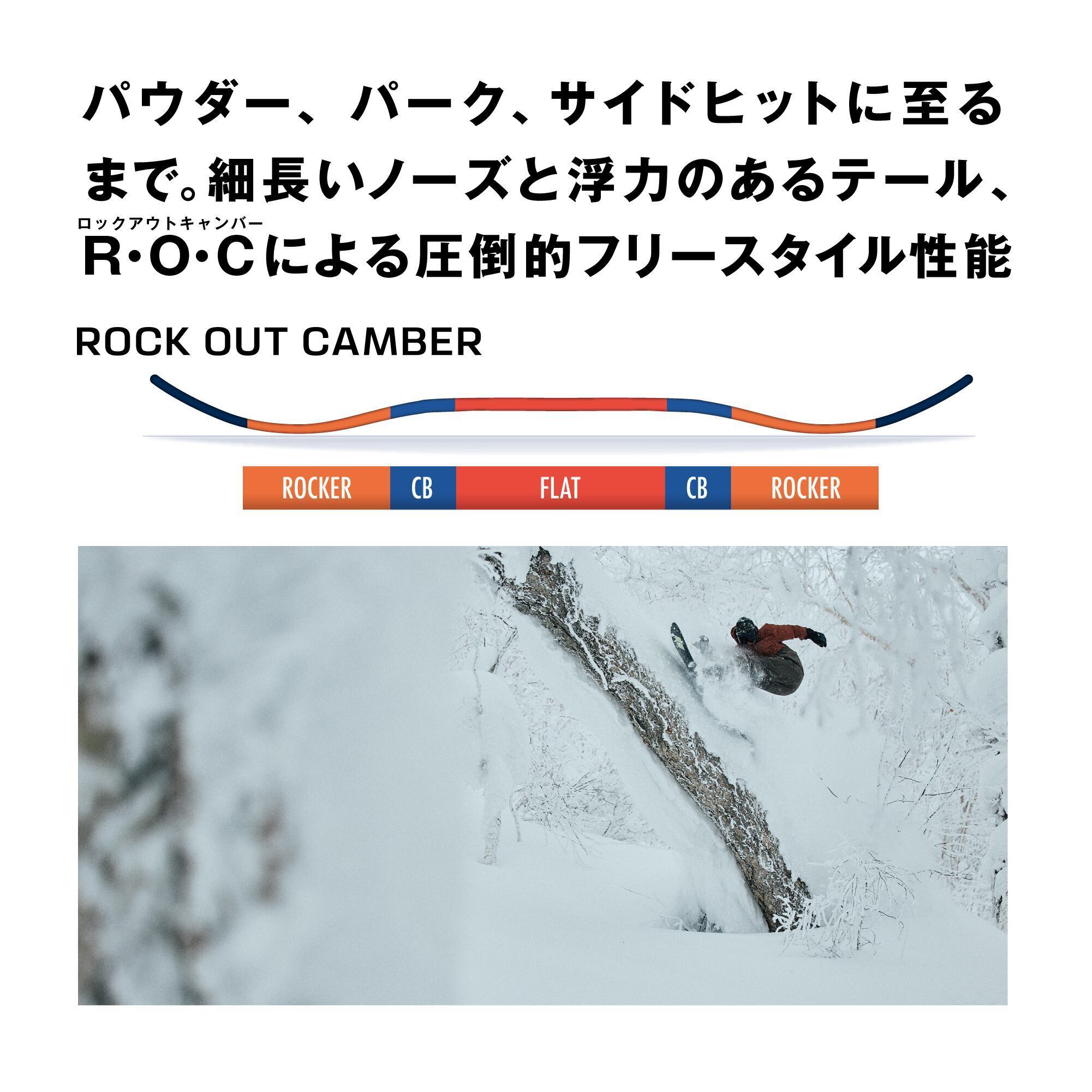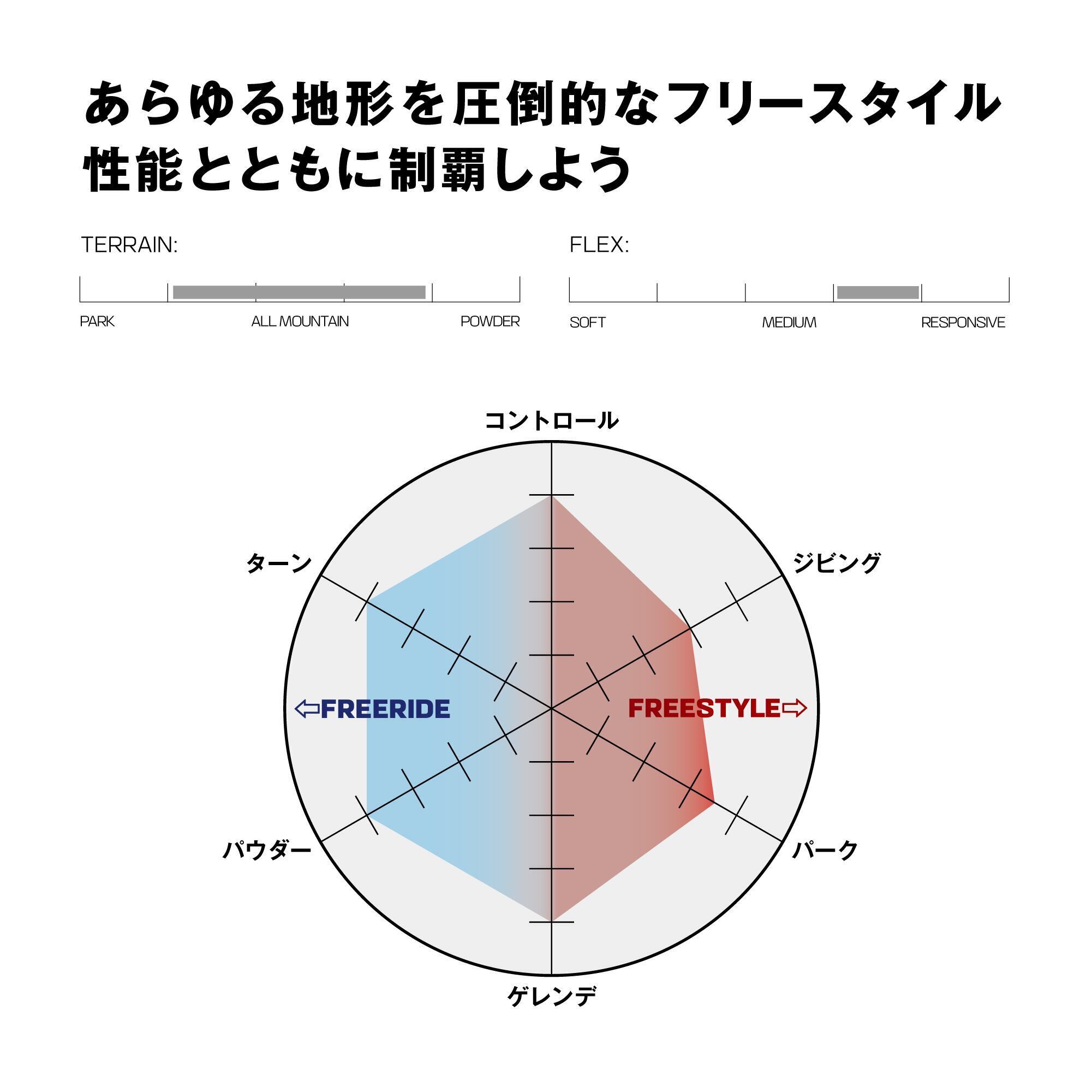 ◇ パウダーからパーク、サイドヒットに至るまで。Assassinは細長いノーズと浮力のあるテール、ロックアウトキャン バーにより圧倒的なフリースタイル性能を提供します。