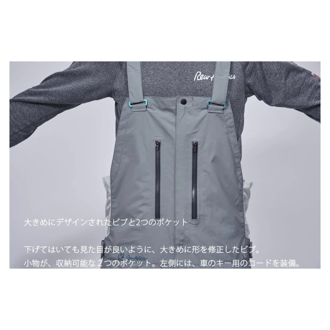 ・rew伝統の小さめのヒップを持つオリジナルシルエットは、ビブパンツになっても健在。