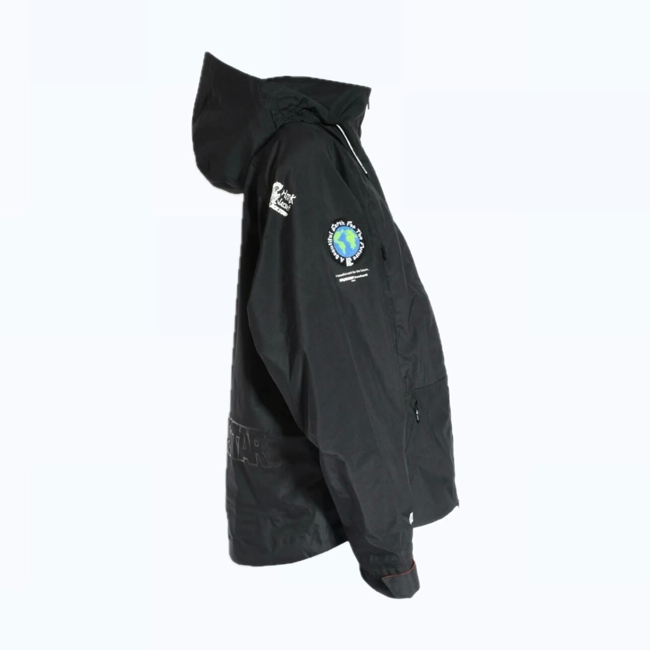 生地にはPREVENT-EXリサイクルFABRICを使用、耐水圧30,000mm、透湿性20,000g/㎡/24h、生地表面には超撥水加工を施し、水弾きを更に向上させています。