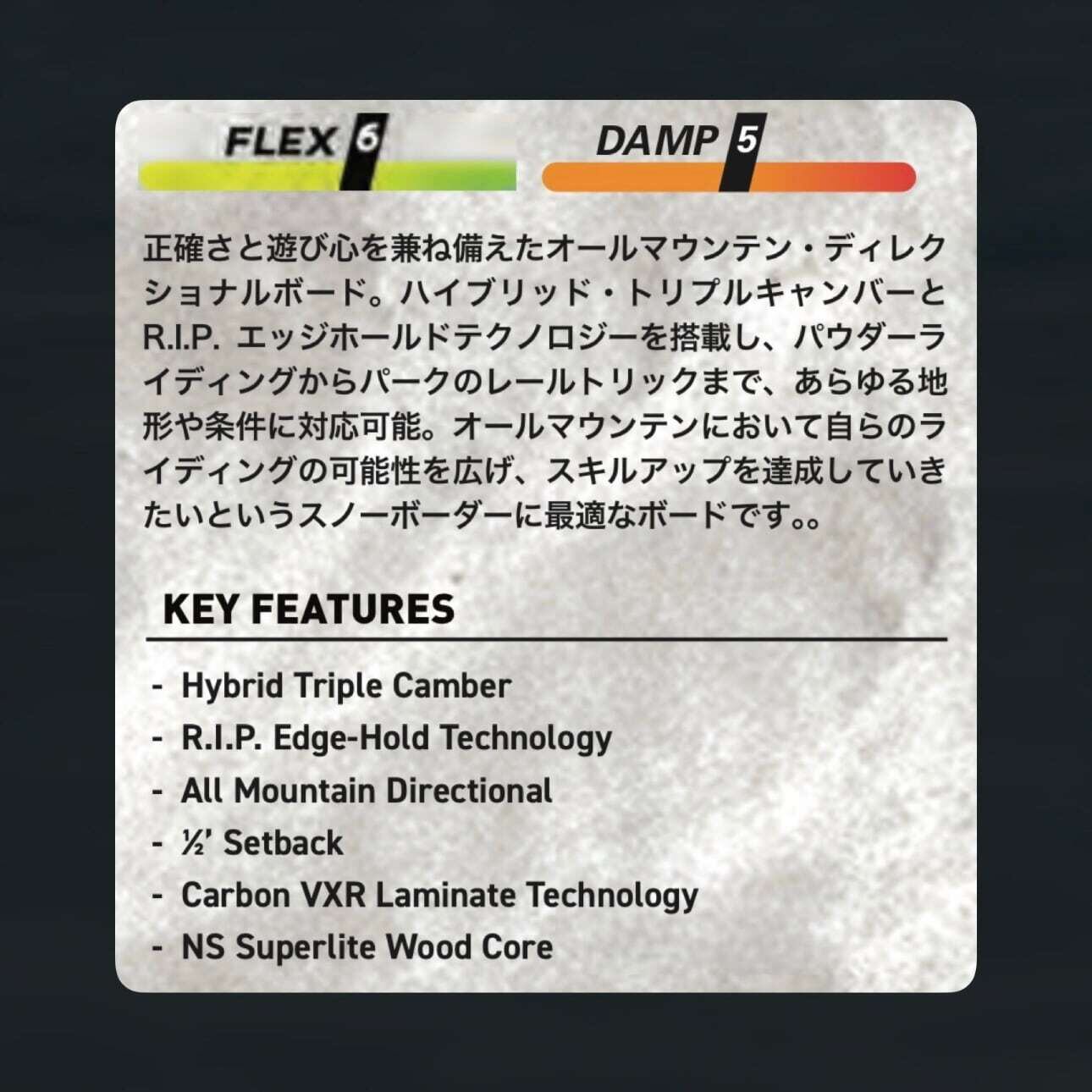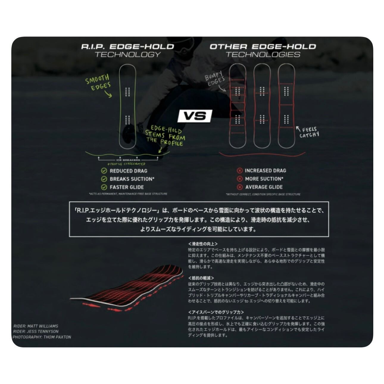 正確さと遊び心を兼ね備えたオールマウンテン・ディレクショナルボード。ハイブリッド・トリプルキャンバーとR.I.P. エッジホールドテクノロジーを搭載し、パウダーライディングからパークのレールトリックまで、あらゆる地形や条件に対応可能。オールマウンテンにおいて自らのライディングの可能性を広げ、スキルアップを達成していきたいというスノーボーダーに最適なボードです。