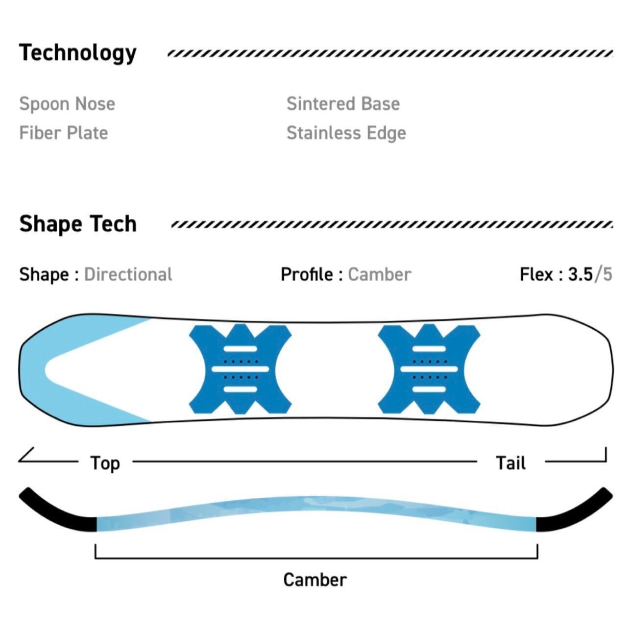 フリーライディングを楽しむために生まれたTracker Proは、ノーズに搭載されたスプーンノーズとキレのあるターン生み出すキャンバー形状が特徴。足元にはファイバープレートを内蔵し、高速フリーライドでの安定感を生み出す。この組み合わせにより、サイドヒット、パウダー、カービングはもちろん、不整地での凸凹でも弾かれることなく、馴染んでいくような動きが可能。さまざまな地形を楽しむための信頼できるボードに仕上がった。