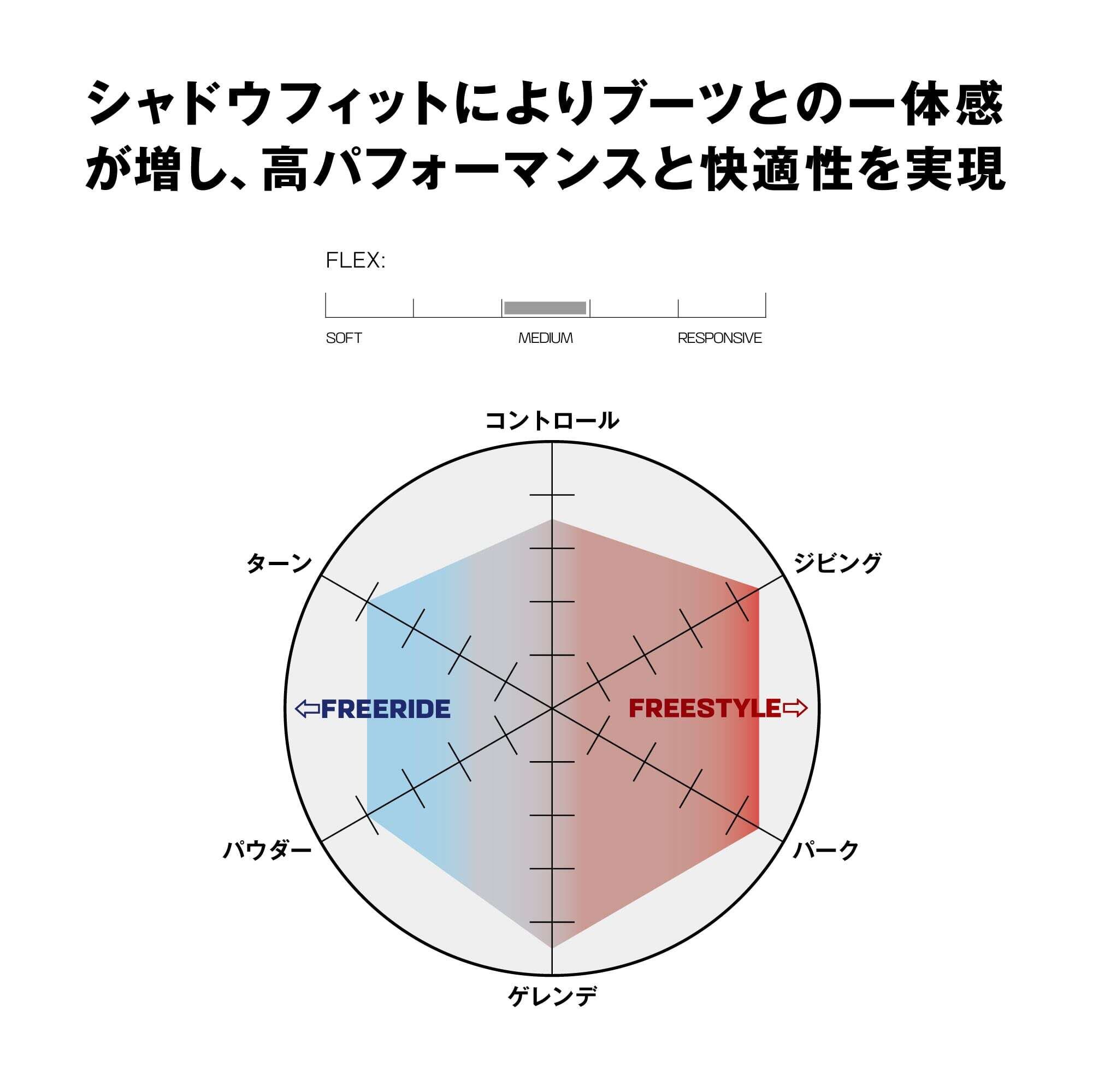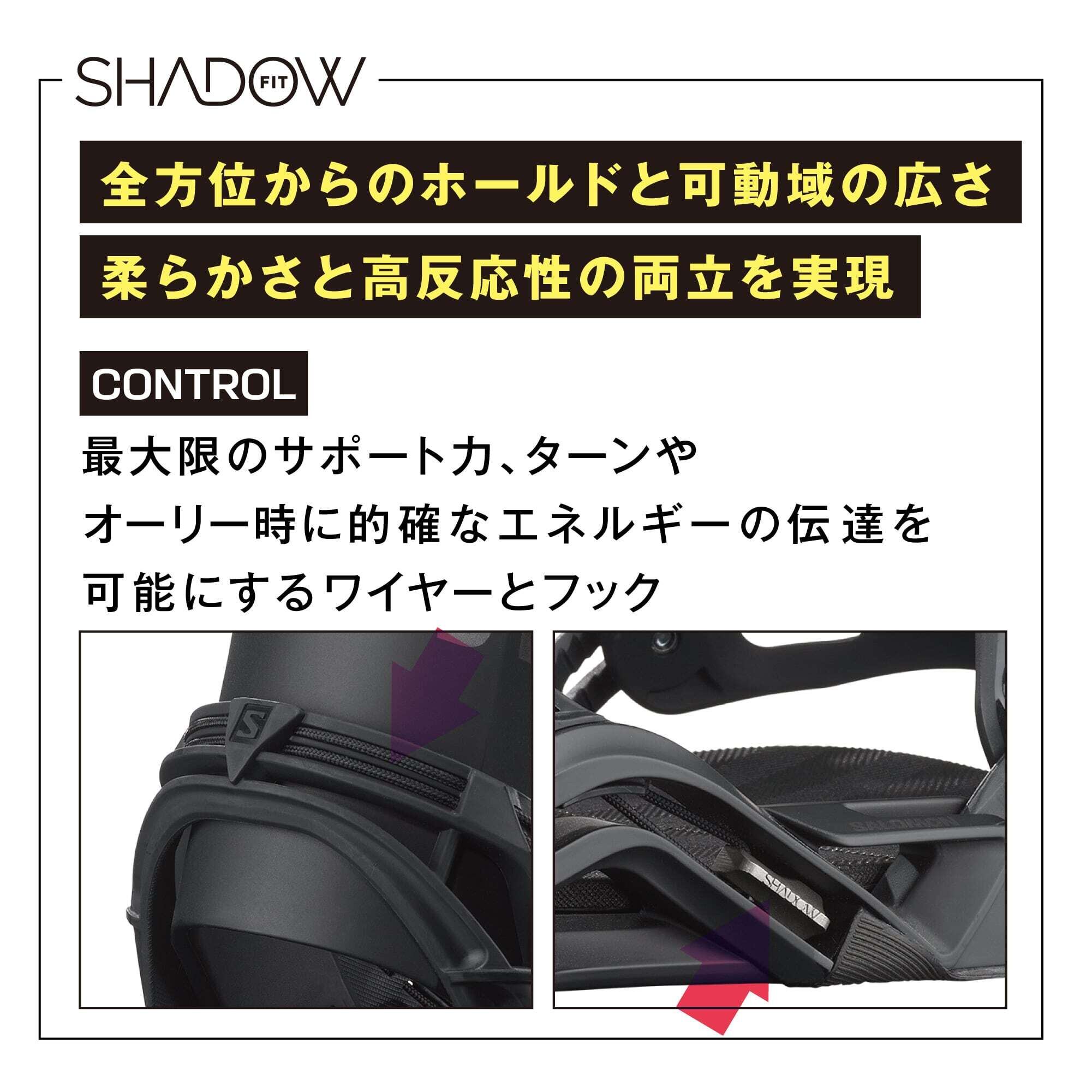 SHADOW FITビンディングは独自のソフトヒールカップを採用し、自然な一体感を提供します。これにより、ブーツとビンディングが連携し、一日中快適さと精密な操作性を実現します。
