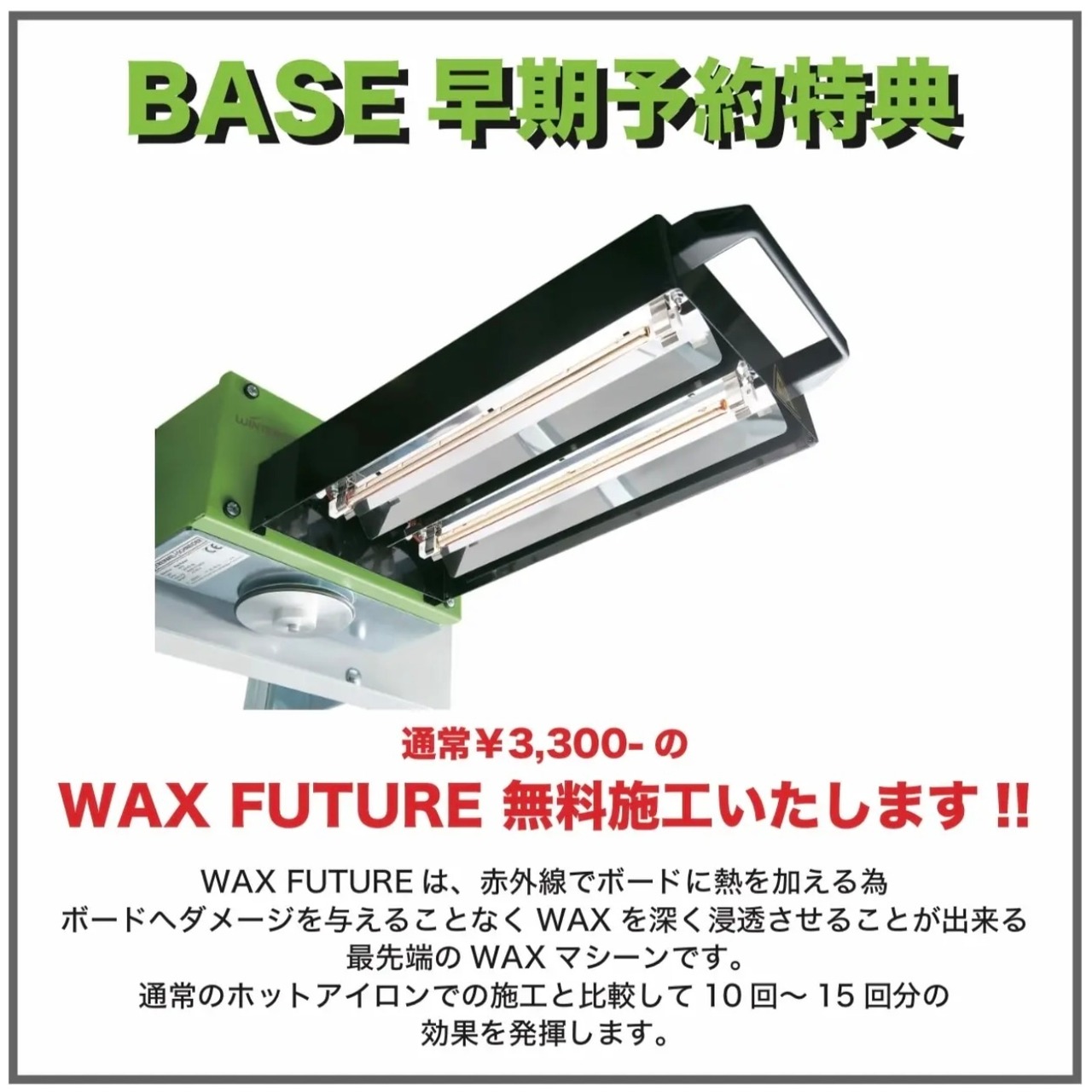こちらの商品は購入特典として通常¥3.300-のWAX FUTUREお試しコースを完全無料施工いたします。