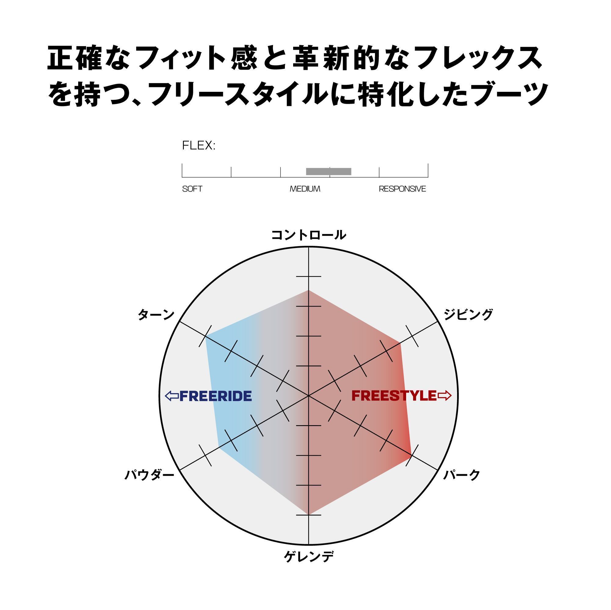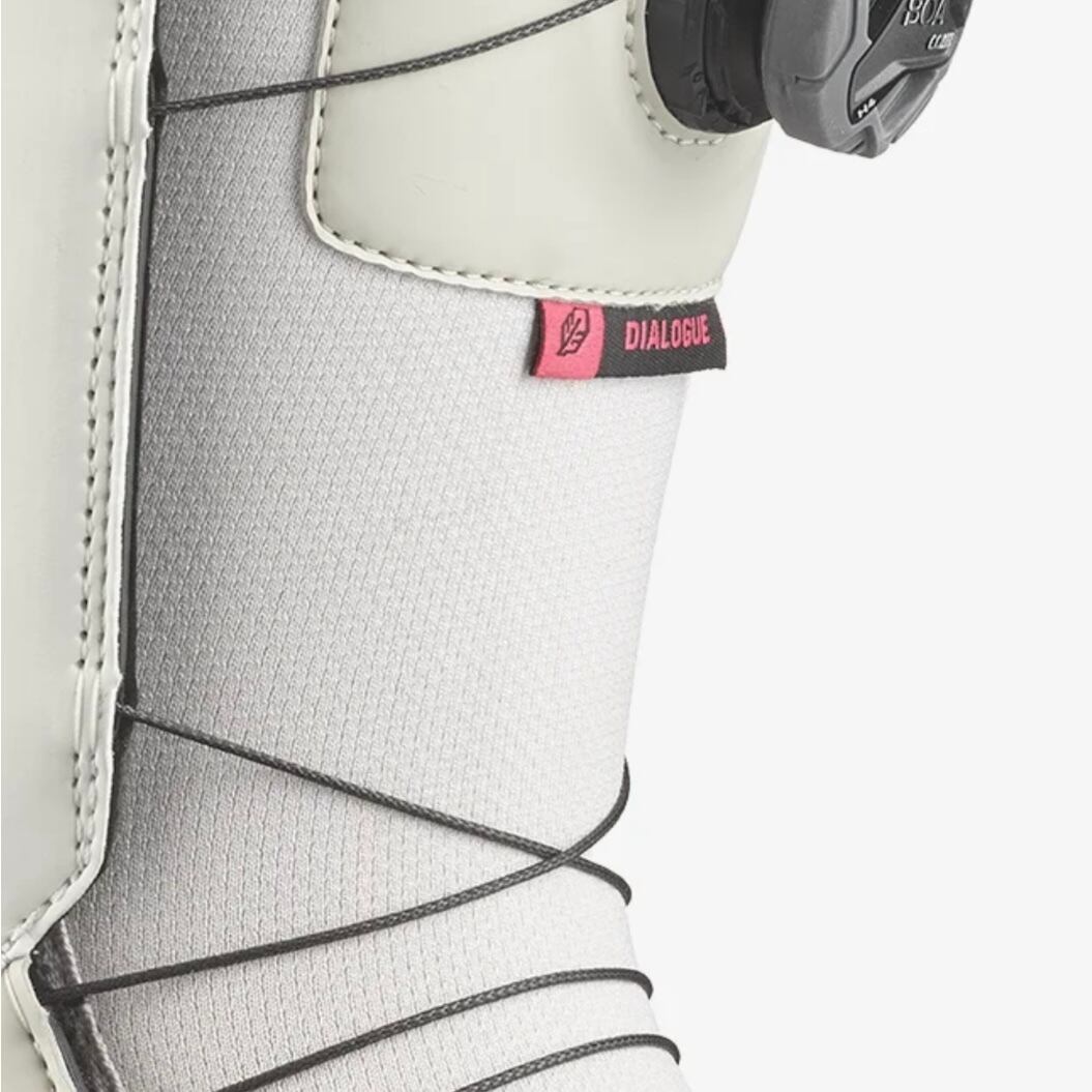 正確なフィット感とプログレッシブフレックスを提供するDIALOGUE DUAL BOAはフリースタイルなライディング性能に特化したブーツです。ミッドフレックスと、ゾーンごとにフィット感を調整できるデュアルゾーンBOAとプレシジョンハーネスが組み合わさり、踵が浮くのをおさえ、心地よいフィット感を提供します。フィットトゥライド構造を採用し、軽さと耐久性を両立し、圧倒的なグリップ力と衝撃吸収力を足元に提供します。