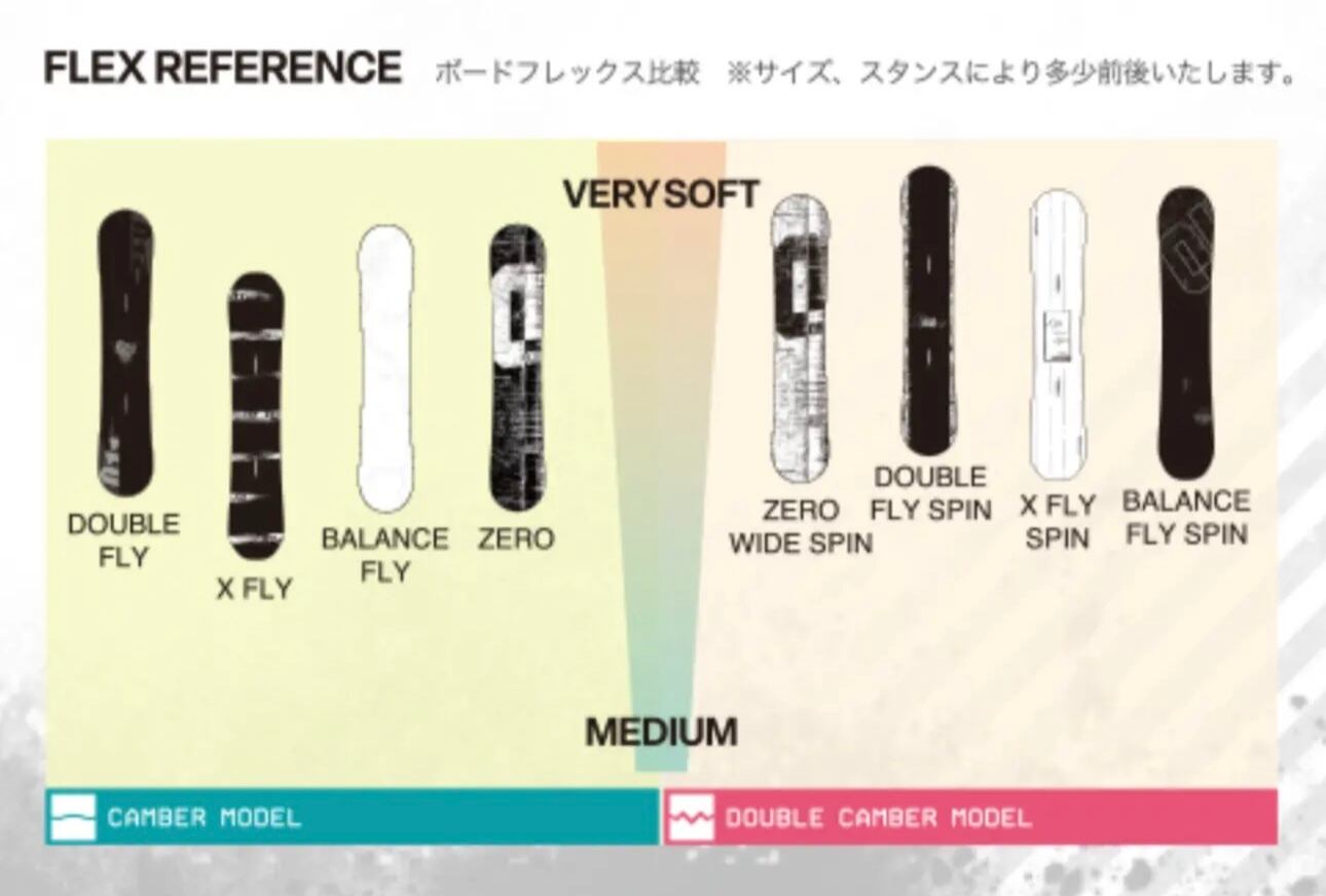 X FLY シリーズに搭載された軽さ、キレ、高さ、スタイルに浮遊感をプラスした国産最軽量ダブルキャンバーボードシリーズ。