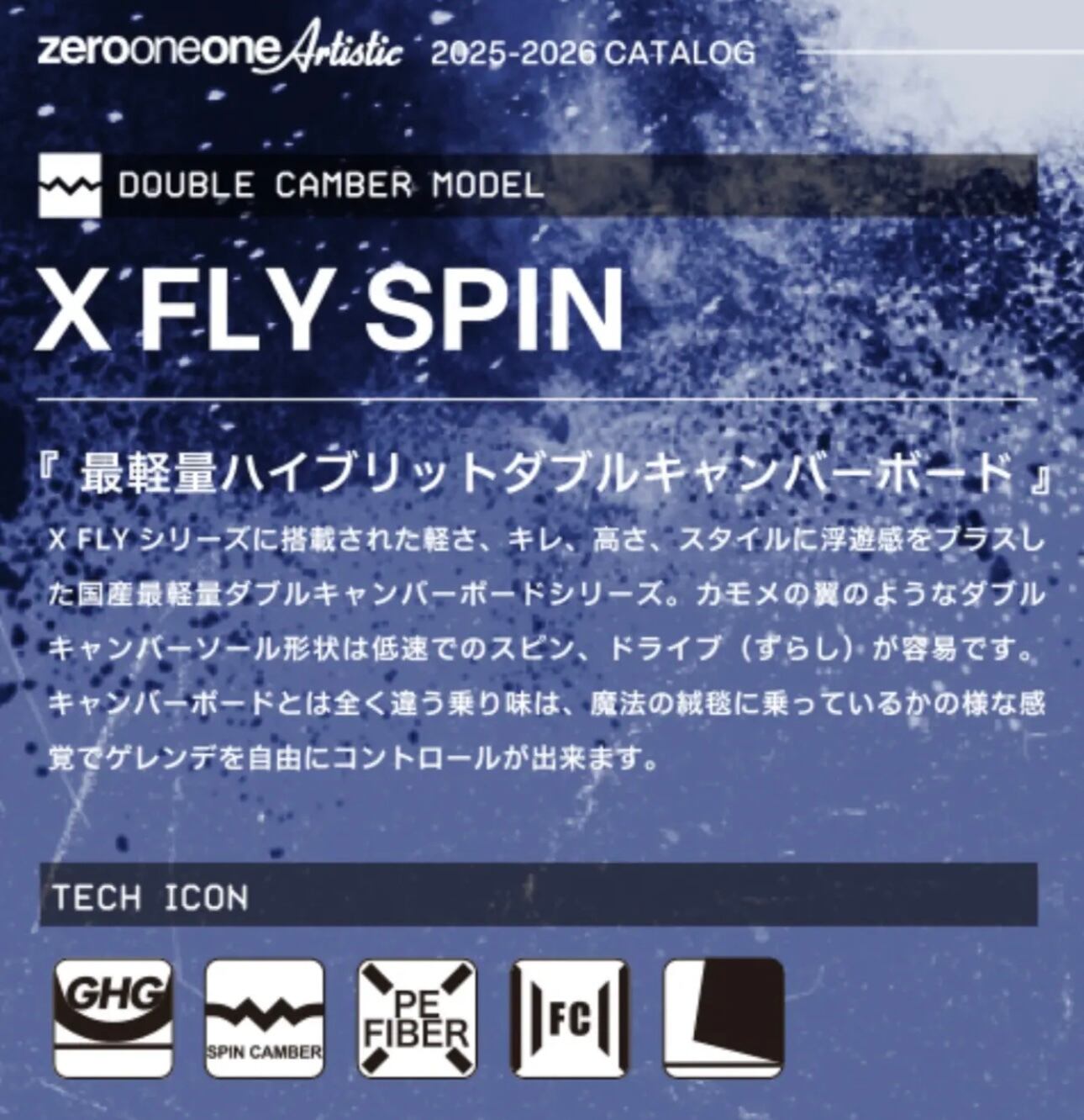 【特典有り】25-26モデル . 011Artistic .『 X FLY SPIN 』. ゼロワンワン . エックスフライスピン . ダブルキャンバー . スノーボード . カービング . フリーラン . グラトリ . パーク . 地形遊び . パウダー . 国産ボード . オガサカ