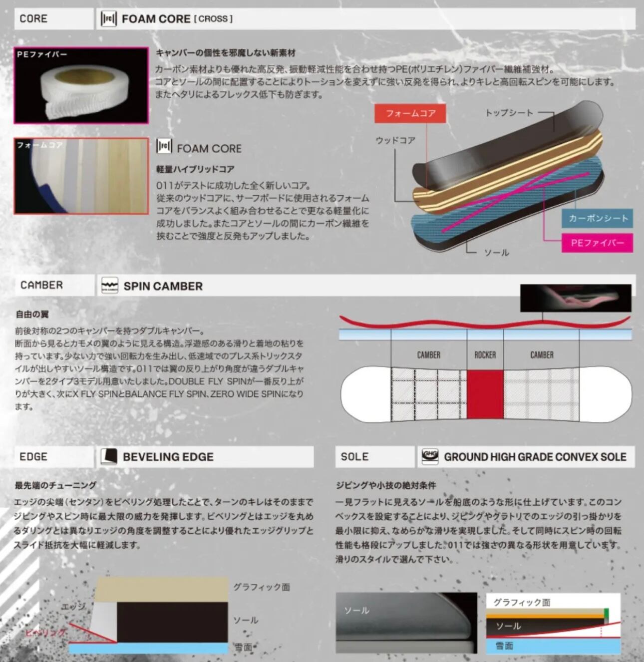 【特典有り】25-26モデル . 011Artistic .『 X FLY SPIN 』. ゼロワンワン . エックスフライスピン . ダブルキャンバー . スノーボード . カービング . フリーラン . グラトリ . パーク . 地形遊び . パウダー . 国産ボード . オガサカ