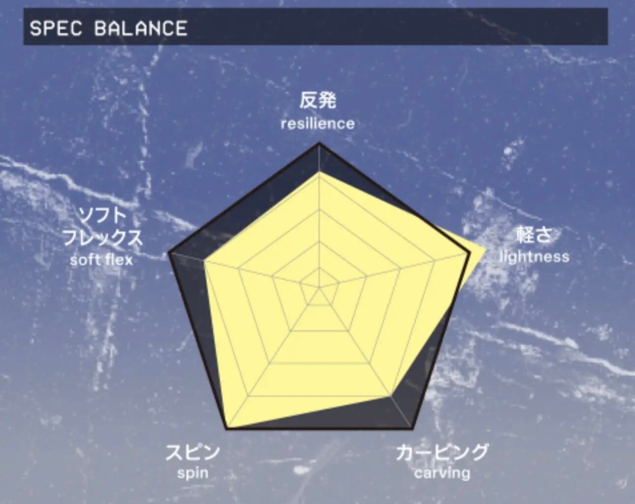 カモメの翼のようなダブルキャンバーソール形状は低速でのスピン、ドライブ、(ずらし)が容易です。