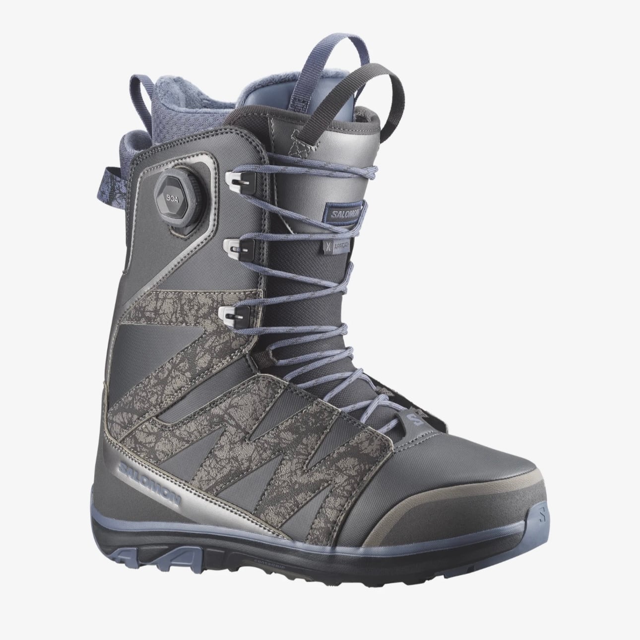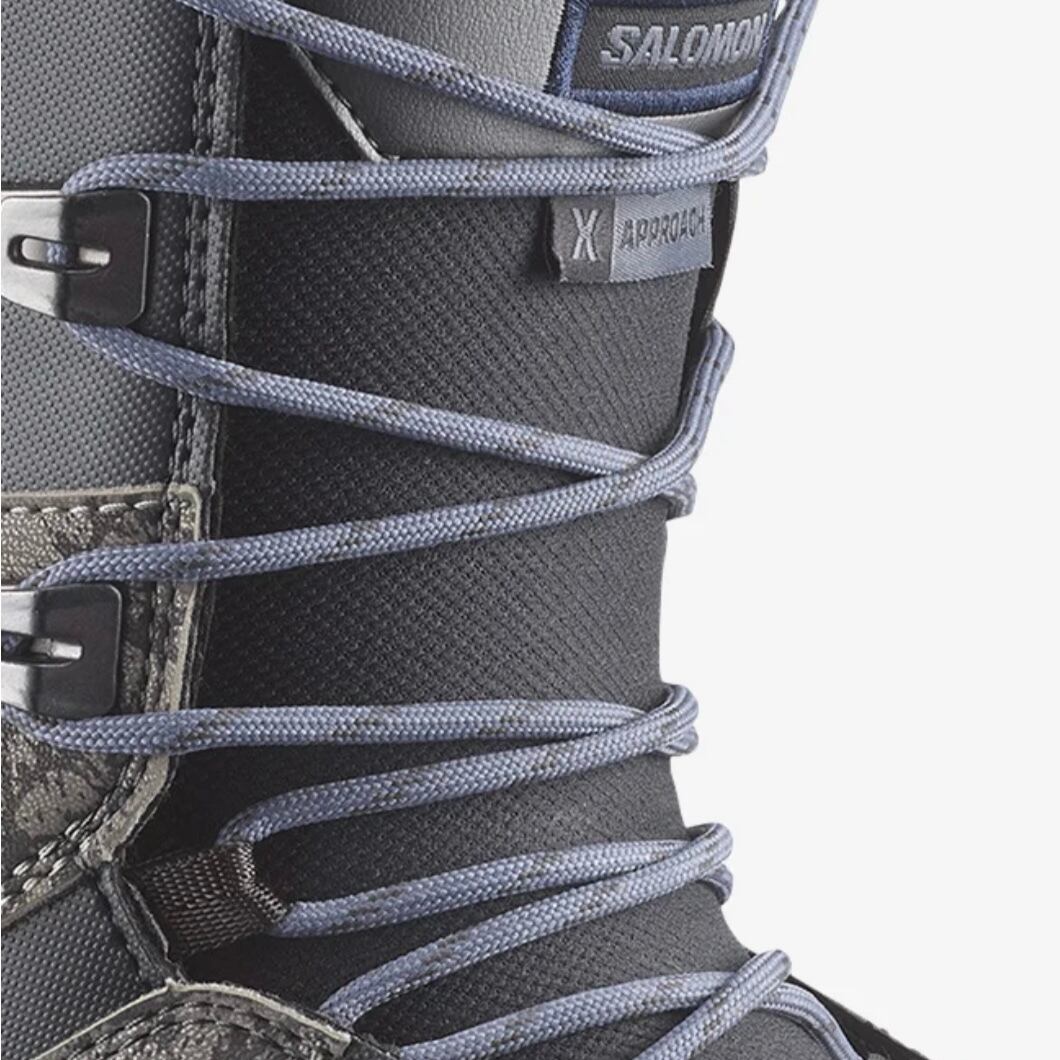 X APPROACH LACE SJ BOAはアイコニックなサロモンのスニーカーからインスピレーションを得た、パーク、フリースタイルを得意とするユニセックスブーツです。最高級の素材とフィットトゥライド構造が、軽量でありながら最高級の快適性を提供します。BOAを採用したSTR8JKTハーネスが踵の浮きをおさえ、高いサポート力を提供します。