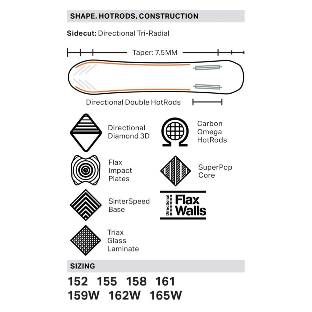 プレミアなライディングをするために、アグレッシブなオールマウンテン・ボードを求めるライダーのために作られた。パワフルなフレックス・プロファイル、テーパー、ノーズの3Dシェイプにより、RAVINE PROはシリアスな地形やディープなコンディションに対応するチームライダーのお気に入り。