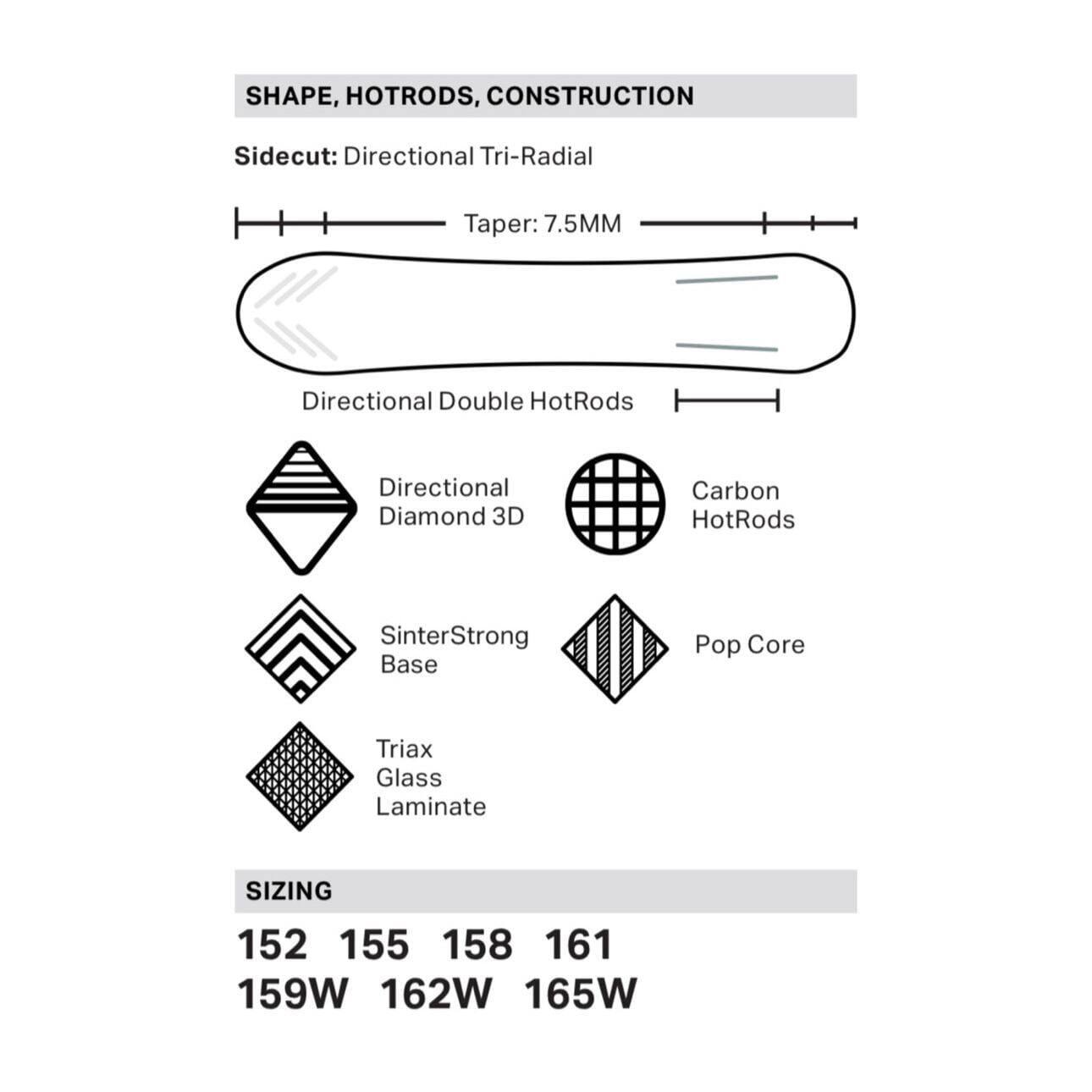 ミディアムなフレックス・プロファイルとテーパーが入った3Dノーズにより、RAVINEはオールマウンテン・ライディングの可能性を広げたいライダーに最適。パウダーの日から毎朝のグルーミングバーンでのランにフリースタイルの動きを与える。