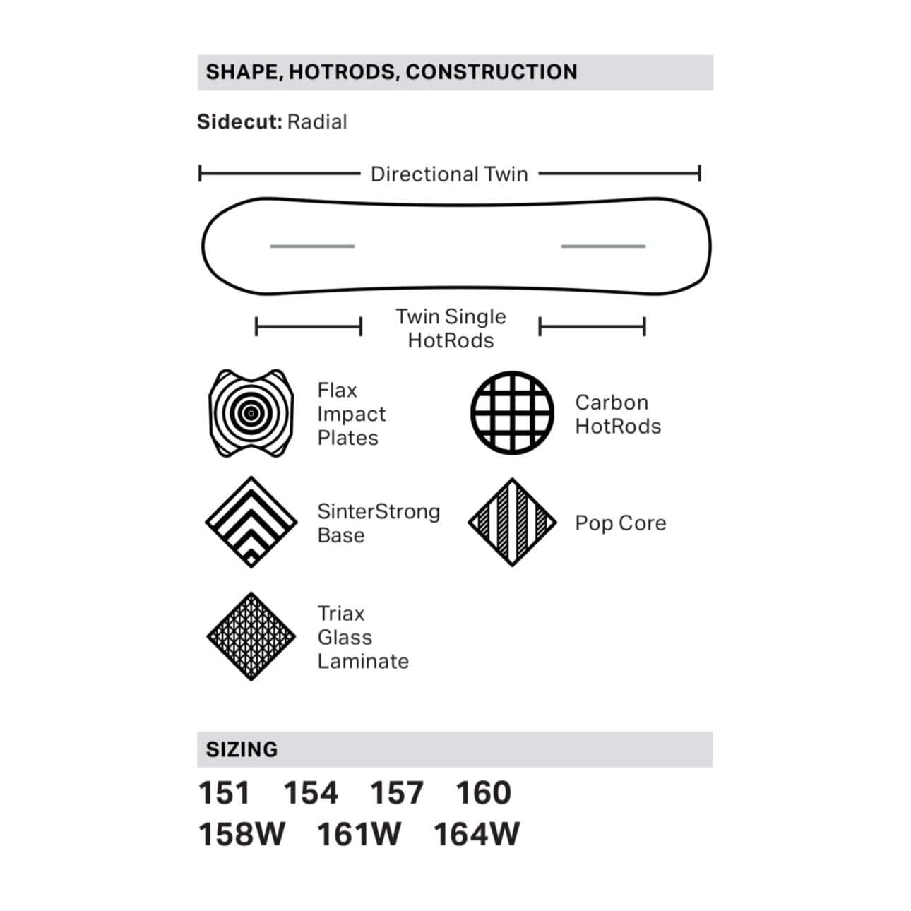 STALEによってデザインされたSTALE CREWZERは、ミディアム・フレックスであらゆるコンディションに対応する万能ボード。パークを攻め、サイドヒットを当て込み、サイドカントリーを楽しむために必要なレスポンスとプレス性能を求めるライダーにとって最適。