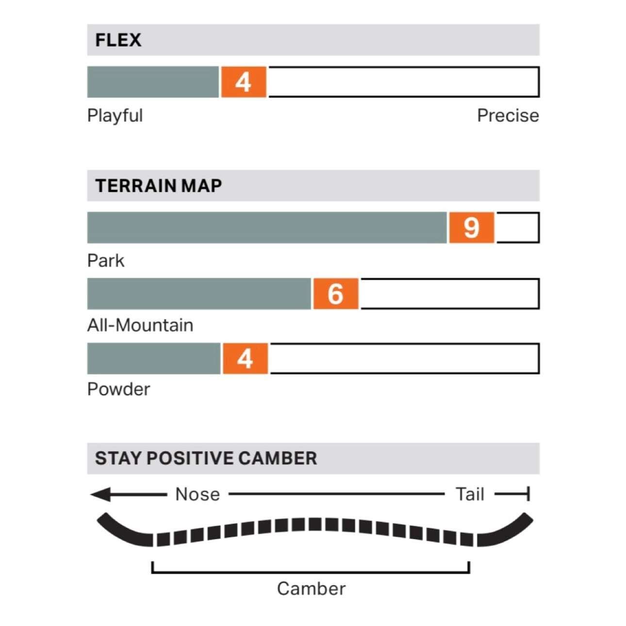 ダウンレール、ポールジャム、ローブ・オーリーでのプレス性能と山全体でフリースタイルを感じたいライダーのためのARTIFACTは、メロウなフレックスとレトロモダンなシェイプ、パーク・ライダーが認めたツイン・ダブルキックを搭載している。