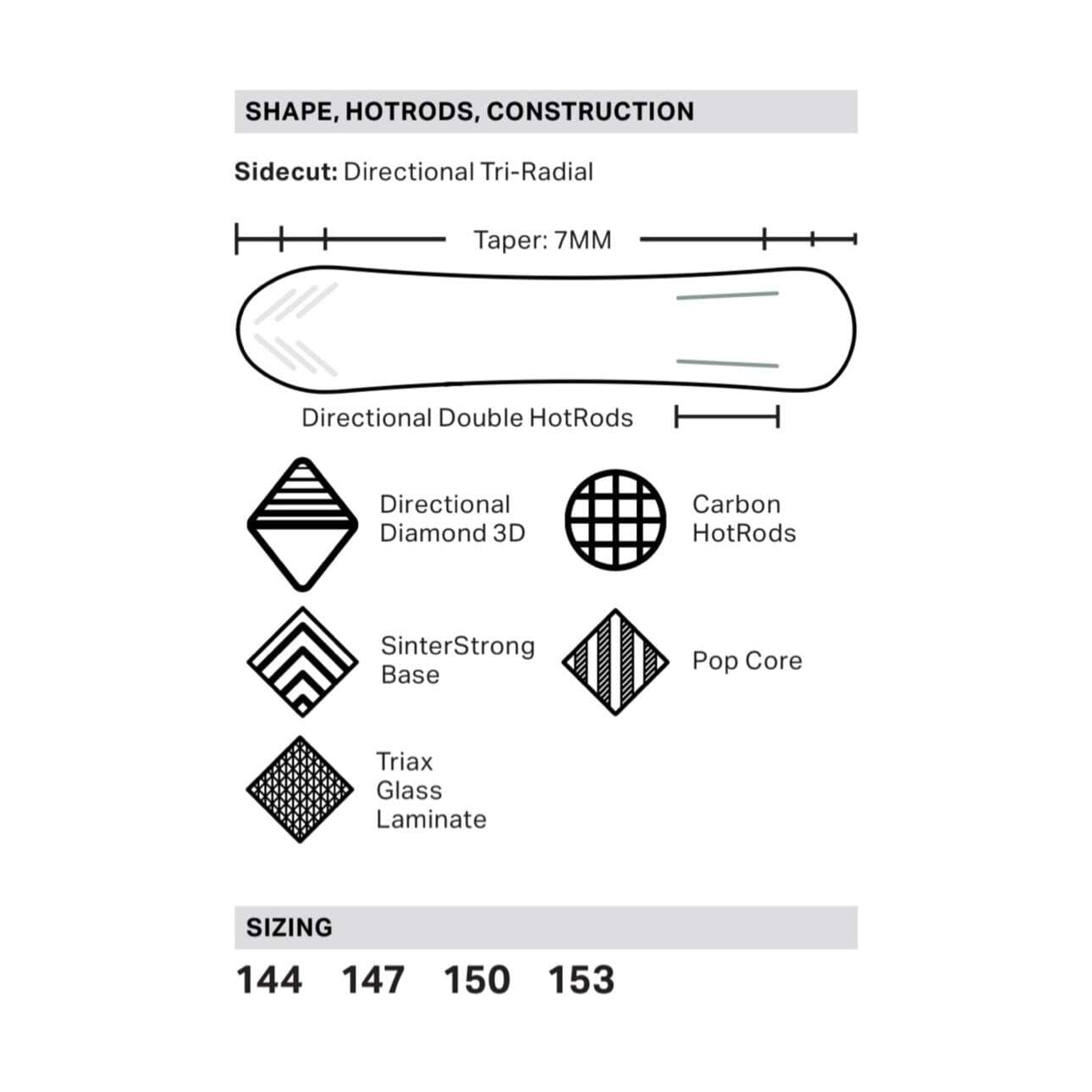 多用途に使えて信頼できるWOMEN’S RAVINEはオールマウンテンやパウダーをシーズン通して楽しめる。3Dノーズ、テーパー、ミディアムなフレックス・プロファイルを特長とし、どんなコンディションでも自信を持ってライディングできる。