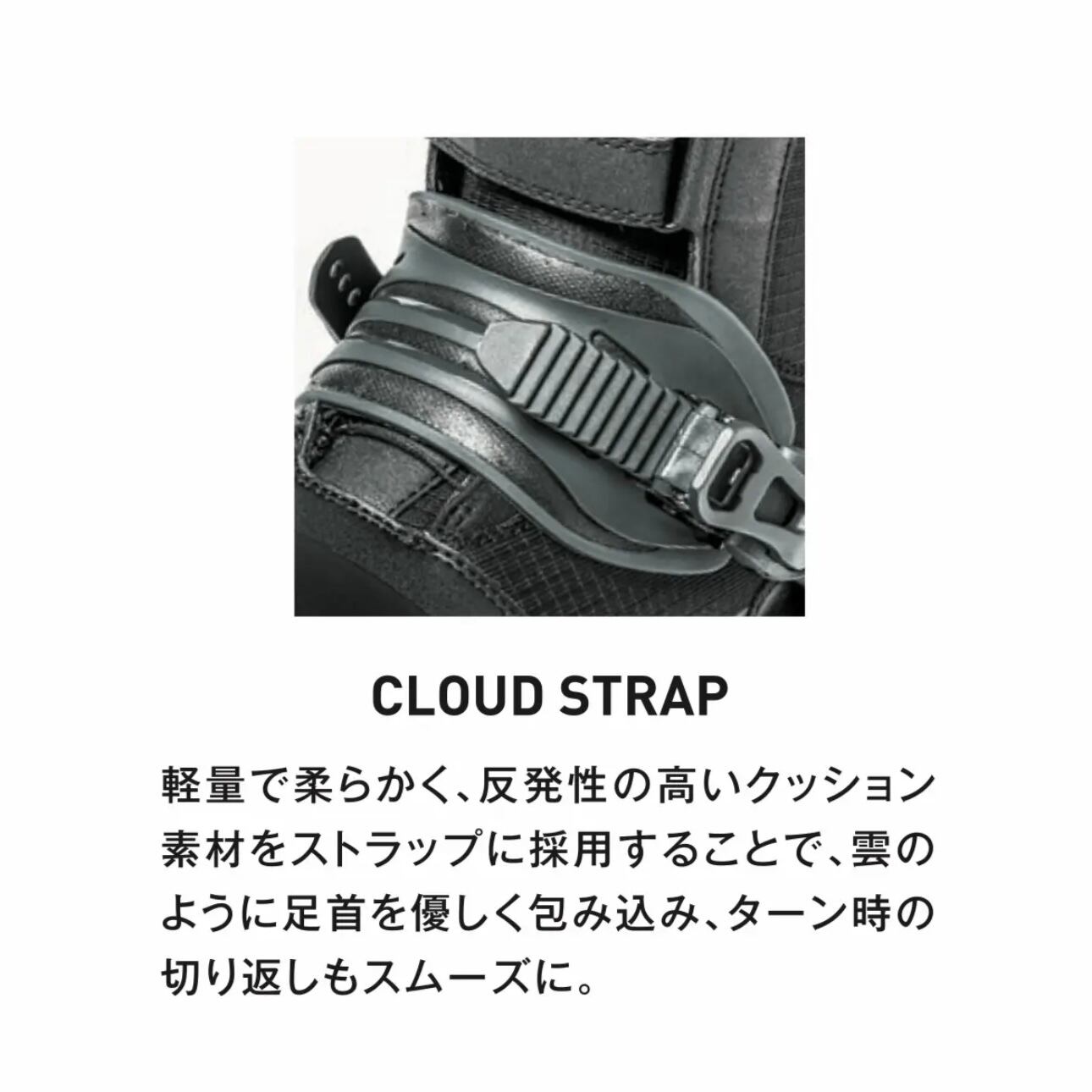 さらに柔軟かつ反発のある新素材CLOUD STRAPはジブでの瞬時な動きと可動域、グラトラでのスピンの回しやすさを向上させる。