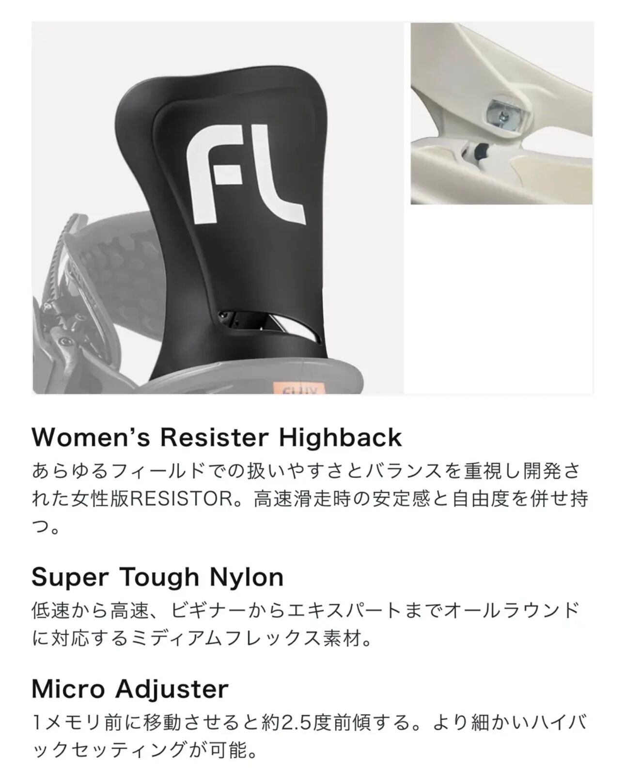 DSの要素を女性用モデルに落とし込み、あらゆるコンディションで快適なライディングを実現するバインディングです。