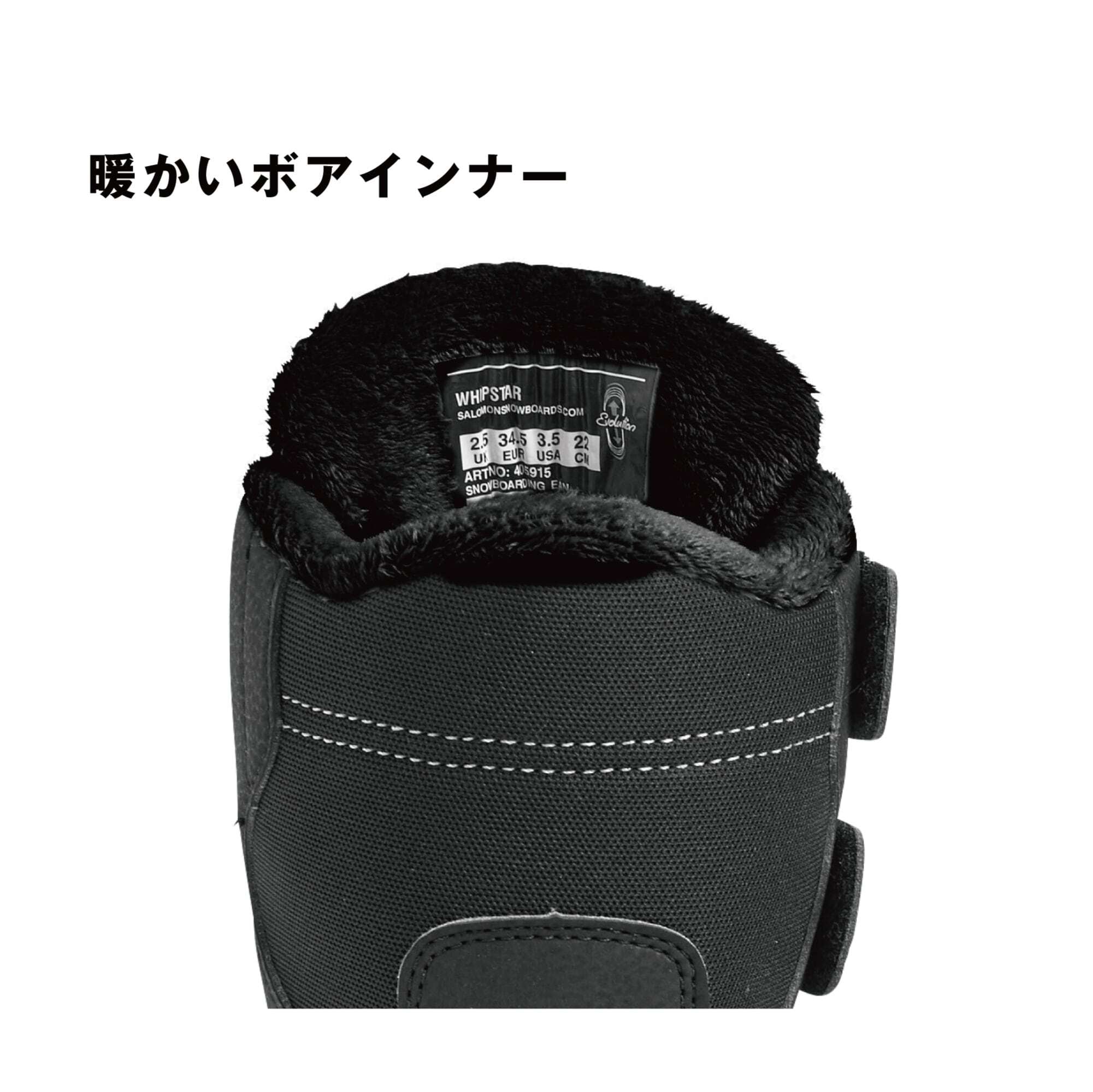 WHIPSTARはデュアルEZベルクロストラップと,縫製を解くことで快適性を妥協することなくハーフサイズ分の余裕を確保するEvolutionフットベッドを採用し利便性と快適性を未来のスターに提供します。キッズ専用の構造が雪の上での体験を,暖かく快適にサポート。NO-SLIPアウトソールのグリップ力が子供たちが遊びに夢中になれる安全性を提供します。