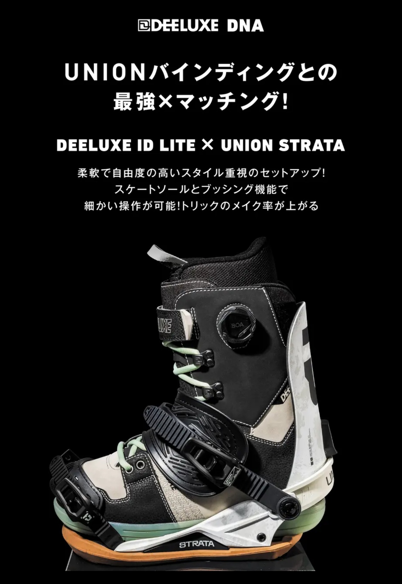 25-26モデル. DEELUXE .『 DNA S2 』. Essential Black . ディーラックス . ディー・エヌ・エー . ステージツー . エッセンシャルブラック . カービング . パーク . パウダー . グラトリ . フリーラン . スノーボード . ブーツ | switch East