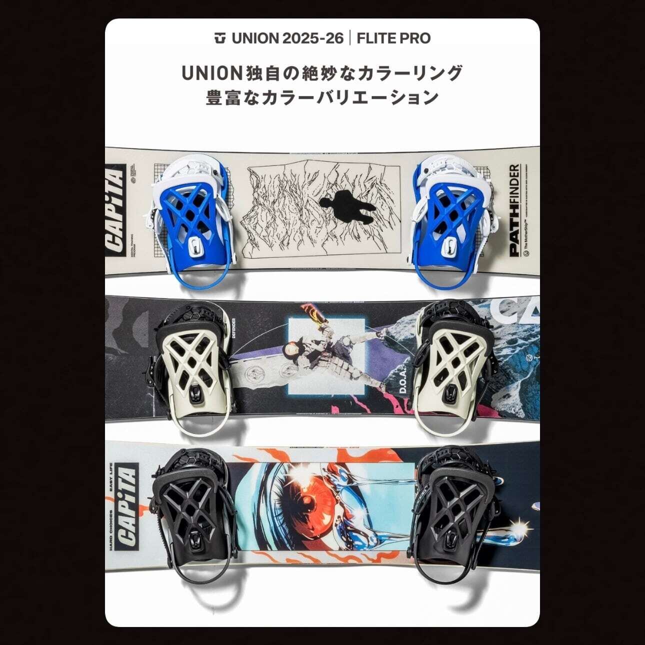 市場で最も軽量なメンズスノーボードバインディング,UNION FLITE PRO(フライトプロ)。
