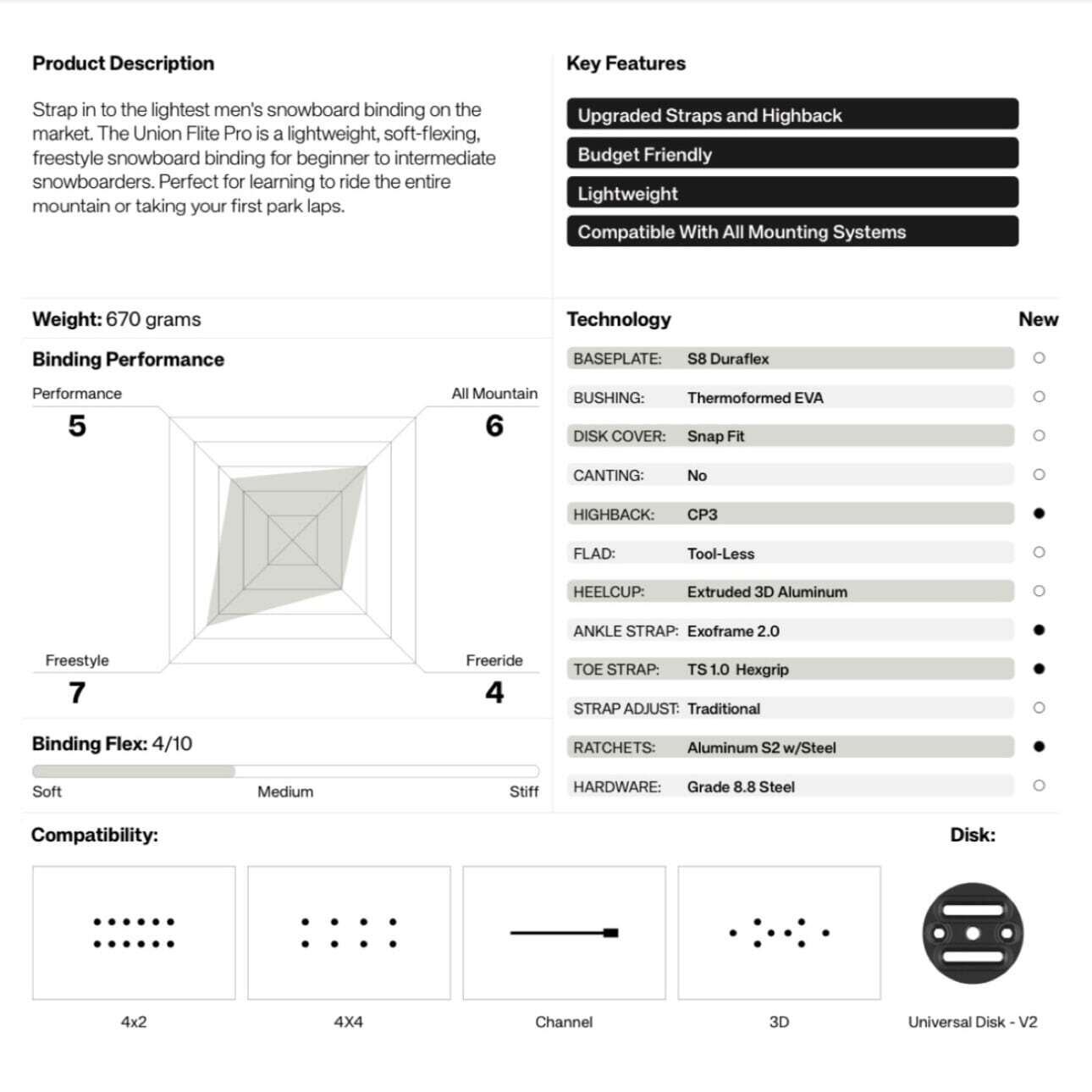 市場で最も軽量なメンズスノーボードバインディング,UNION FLITE PRO(フライトプロ)。