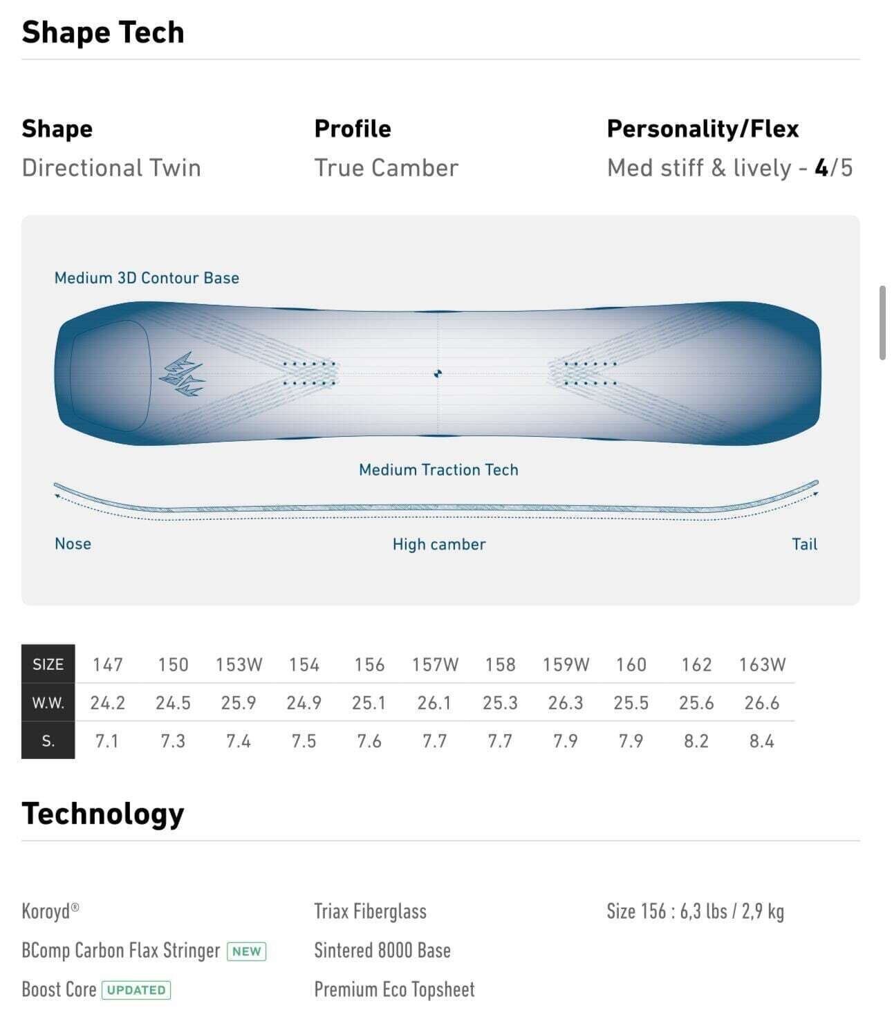 固めのフレックスと高い反発力,タフなフルキャンバーのディレクショナルツイン。高性能オールマウンテン・チャージャーとカービングに最適。