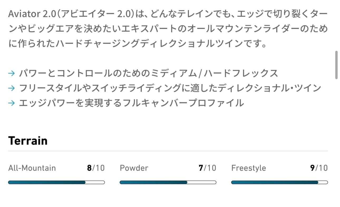 Aviator 2.0は,どんなテレインでも,エッジで切り裂くターンやビッグエアを決めたいエキスパートのオールマウンテンライダーのために作られたハードチャージングディレクショナルです。