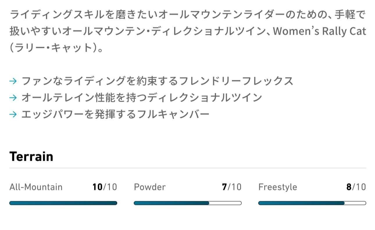 ライディングスキルを磨きたいオールマウンテンライダーのための、手軽で扱いやすいオールマウンテン・ディレクショナルツイン、W's Rally Cat
