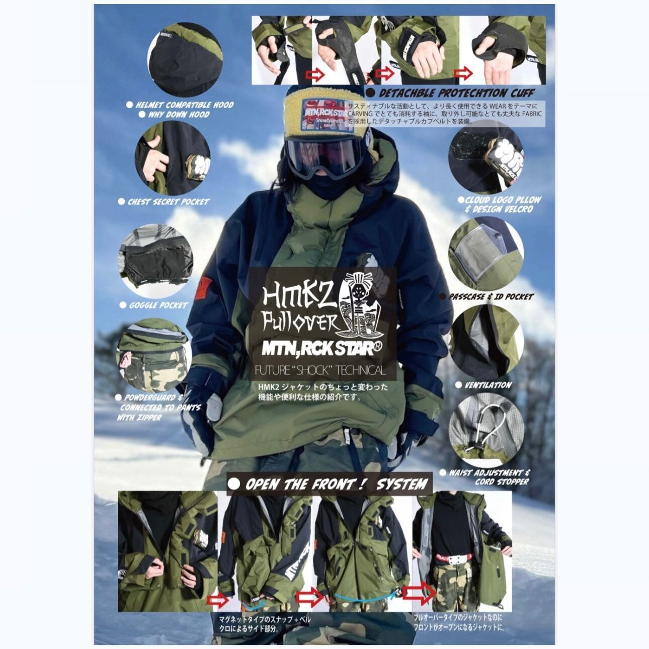 MTN,ROCK STAR 『 HMK 2 PULLOVER JACKET FIERY』25-26 マウンテンロックッスター HARUMAKI JACKET スノーボード ウェア ハルマキジャケット カービング グラトリ ラントリ バックカントリー パウダー