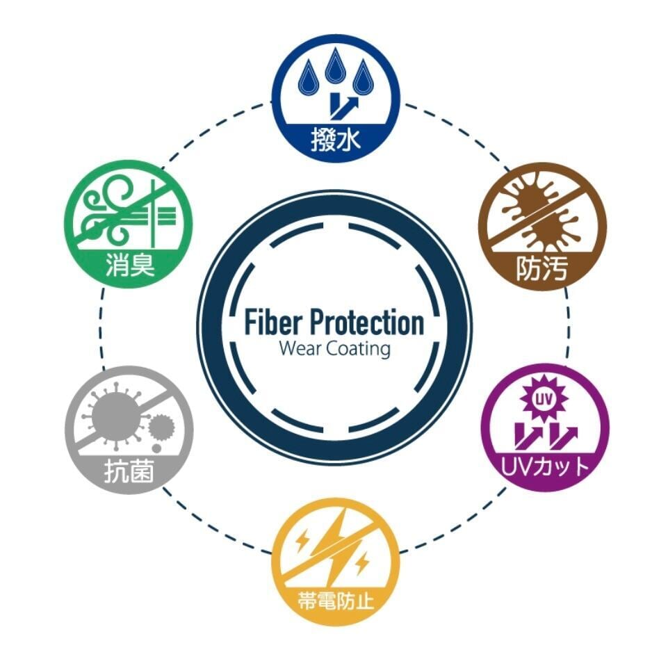 生地にはPREVENT-EXリサイクルFABRICを使用、耐水圧20,000mm、透湿性12,000g/㎡/24h、生地表面には超撥水加工を施し、水弾きを更に向上させています。