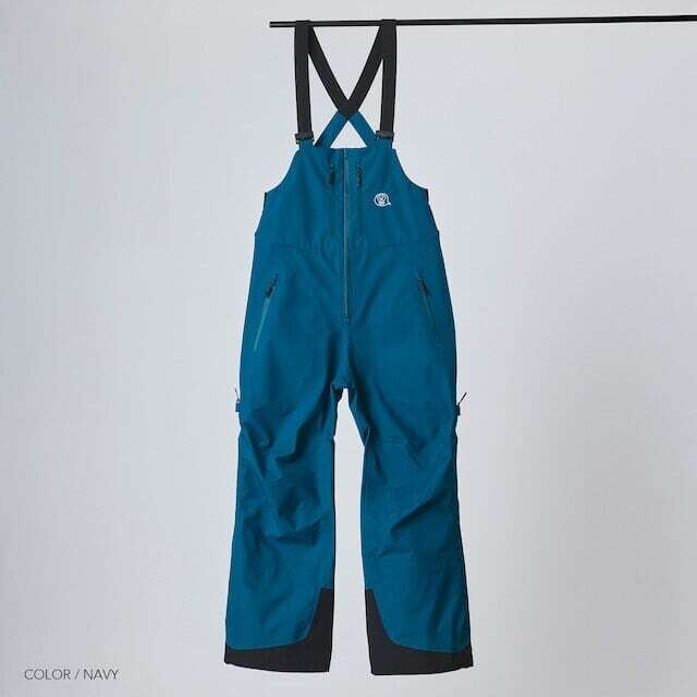 アンファッジスノーウェア創立当時からの定番ビブパンツ「ピープビブパンツ」です。