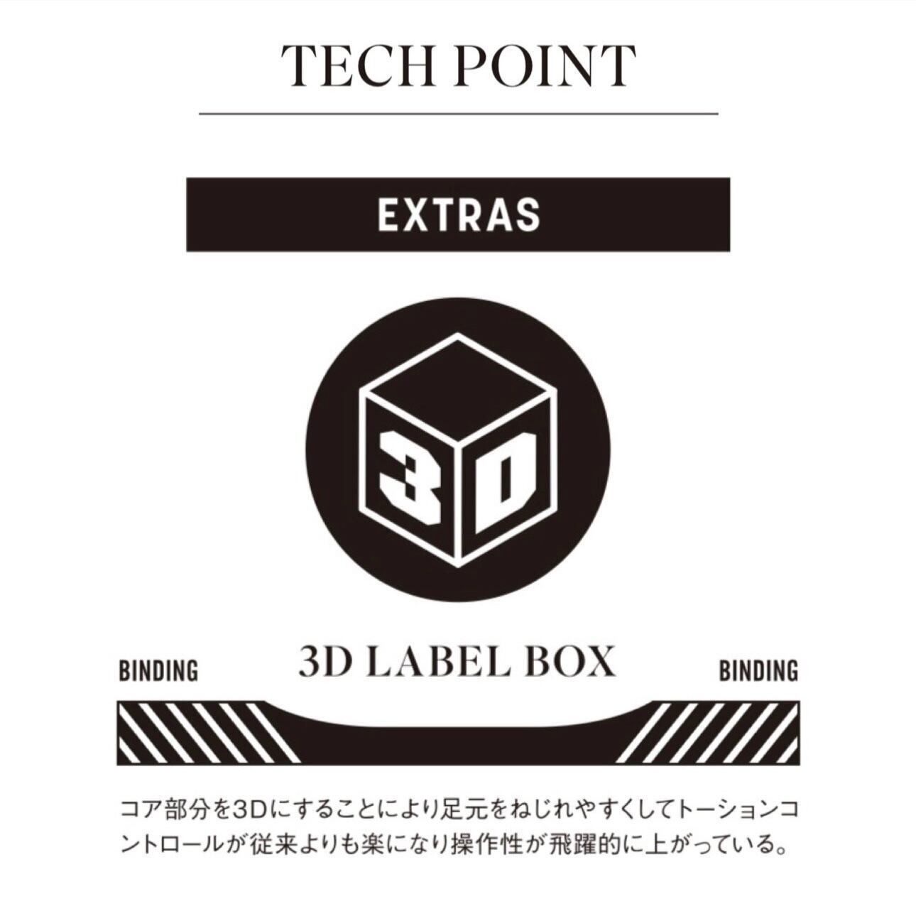 軽量でしなやかなフレックスにより軽快な操作性を発揮し、あらゆるシチュエーションで楽しめるパフォーマンスボード。3D BOXによりEASYコントロールを可能にし、優れたパワーと反発力により高速安定性も非常に優れている。