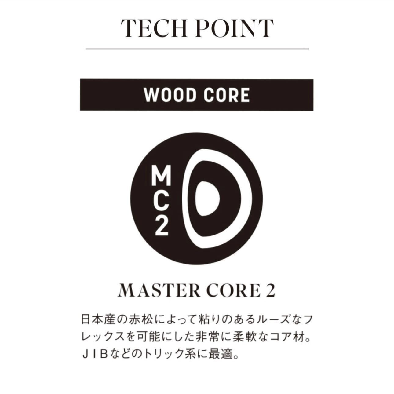 Wキャンバー形状のセンターロッカーが優れたコントロール性能と動きの自由を与え、足元にある小さなキャンバーが反発とグリップを与えてくれる。グラトリからパークまでバランス良く安定したライディングが楽しめる。