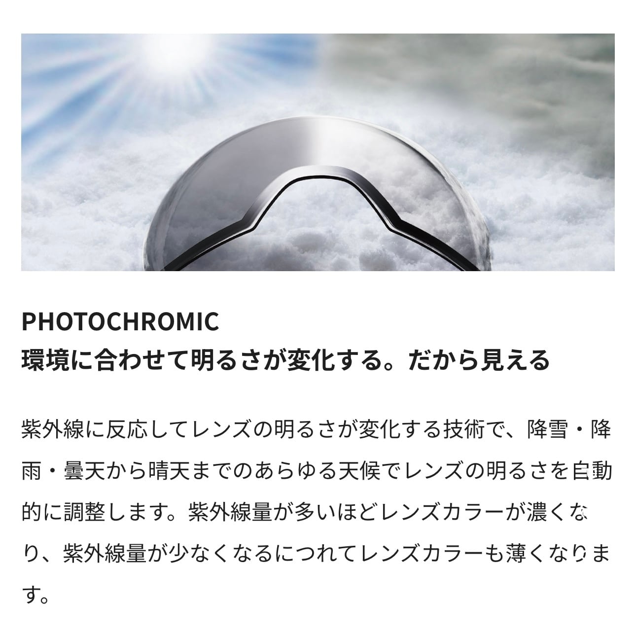 だから見える紫外線に反応してレンズの明るさが変化する技術で、降雪・降雨・曇天から晴天までのあらゆる天候でレンズの明るさを自動的に調整します。