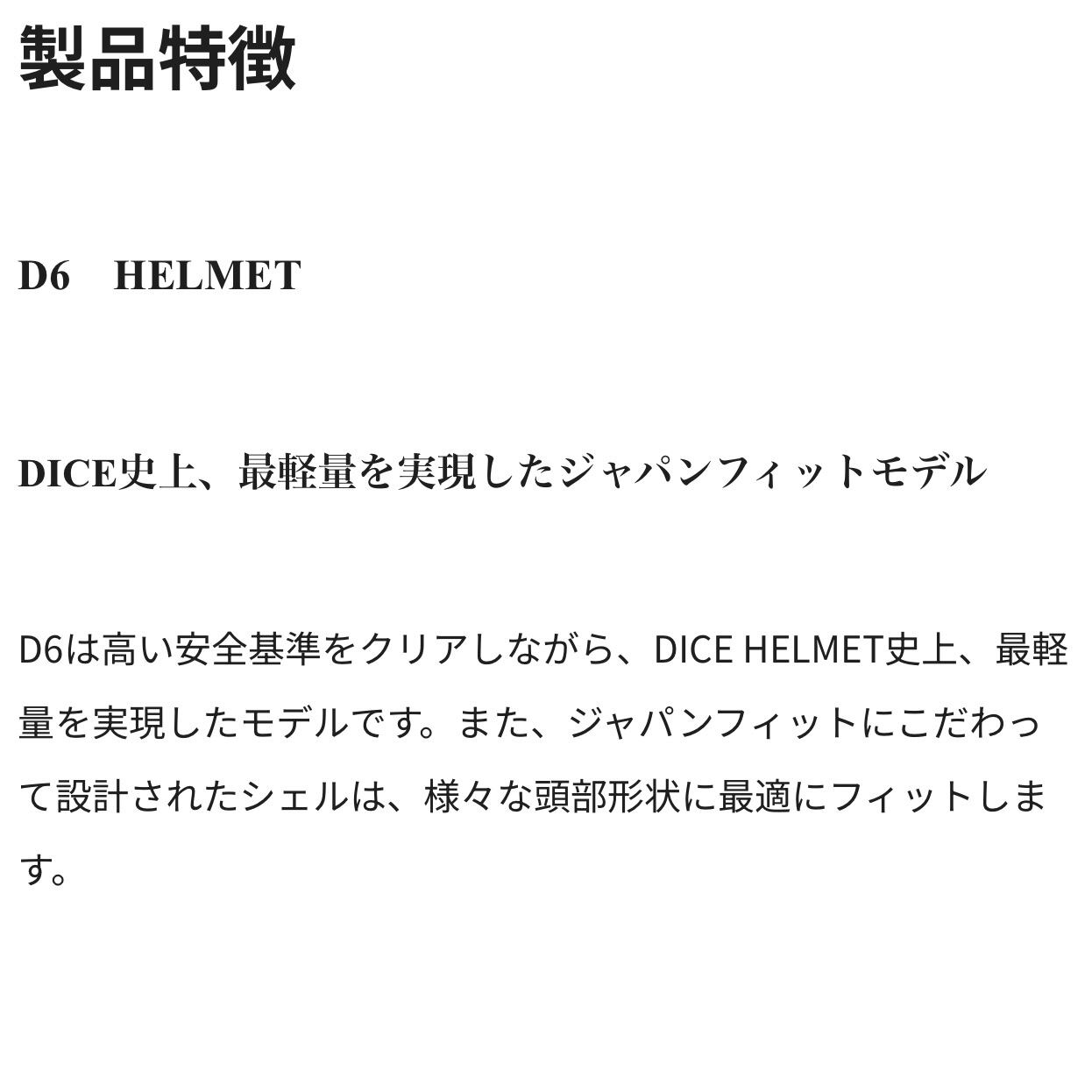 D6は高い安全基準をクリアしながら、DICE HELMET史上、最軽量を実現したモデルです。