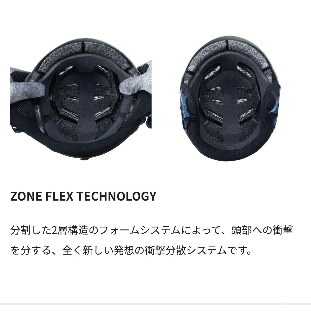 D5には耐衝撃性・フィッティング性に優れた「ZONE FLEX テクノロジー」を採用しています。より安全性を高めながら、軽量で様々な頭部形状にも柔軟にフィットする画期的なモデルです。