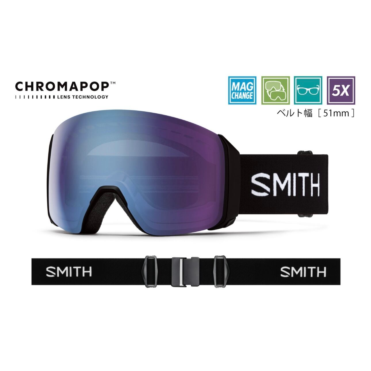 + 5X アンチフォグ・インナーレンズ(水蒸気をインナーレンズ内部にとじ込め曇りの原因を抑える。通常のSMITHフォグX・インナーレンズの5倍の曇り防止機能がある)