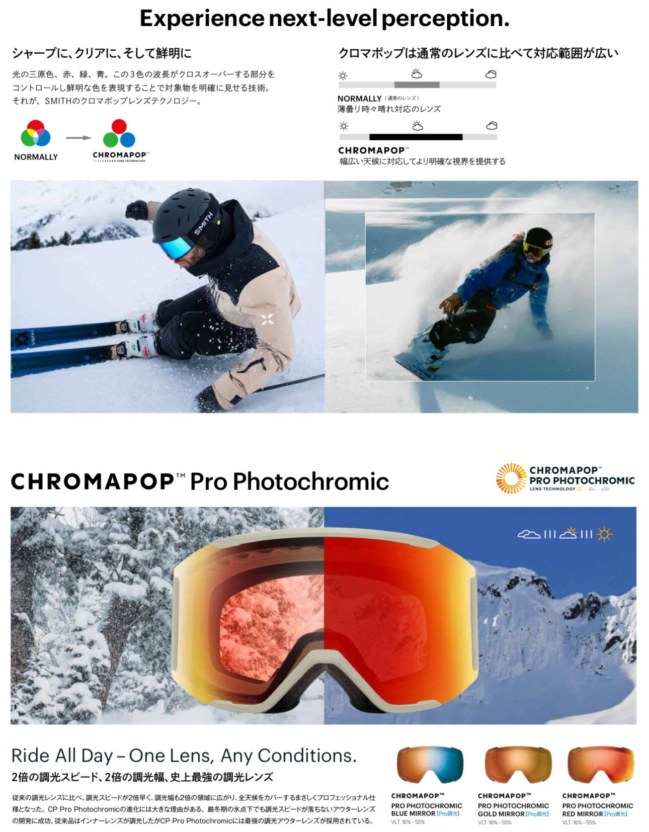 ラージフレームを覆うエクストララージサイズの球面レンズには世界最高峰のクロマポップレンズと5X™アンチフォグテクノロジーを採用。