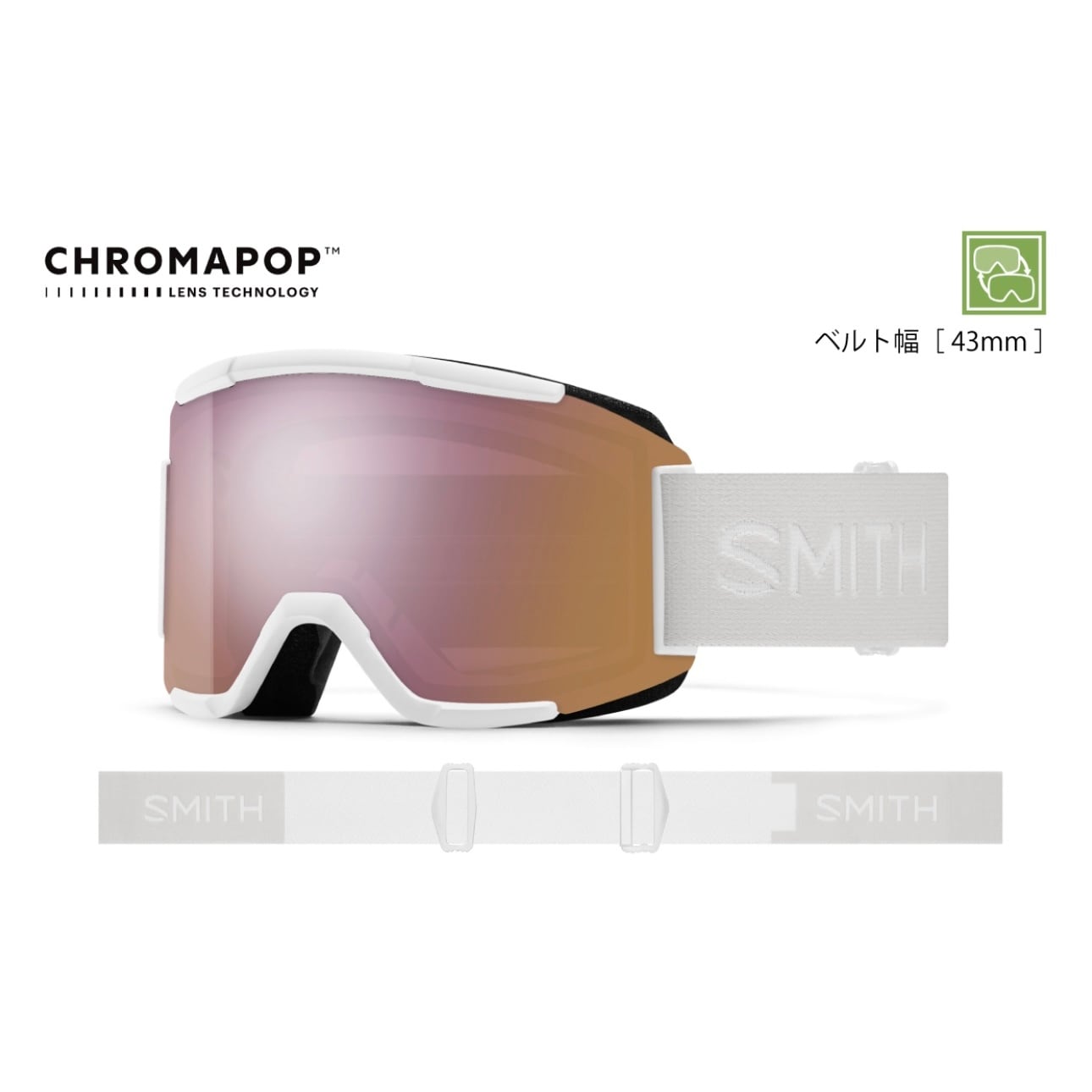 【特典あり】25-26モデル . SMITH . 『 SQUAD 』White Vapor CP Everyday Rose Gold Mirror / Yellow スミス スカッド ホワイトベイパー エブリデイローズゴールドミラー イエロー 平面レンズ 全天候対応 スノーボード ゴーグル スキー ゴーグル | switch East