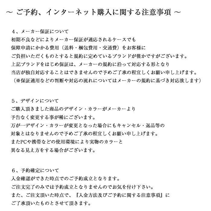 〜 ご予約、インターネット購入に関する注意事項 〜