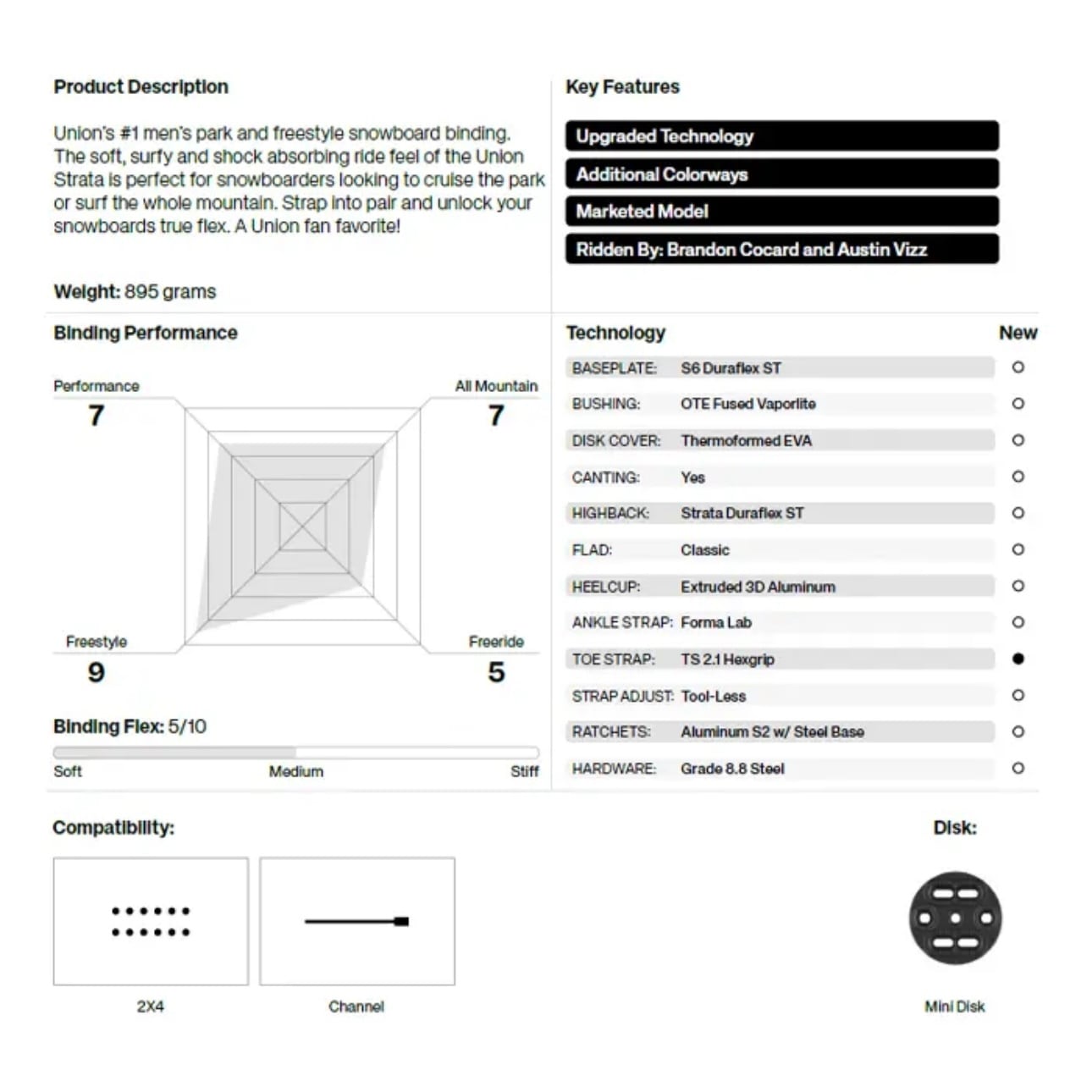 ユニオンのナンバー1フリースタイル ベースプレート。中程度のフレックス性で、パークをクルージングしたり、山の色々なコースをサーフィンするのに最適です。
